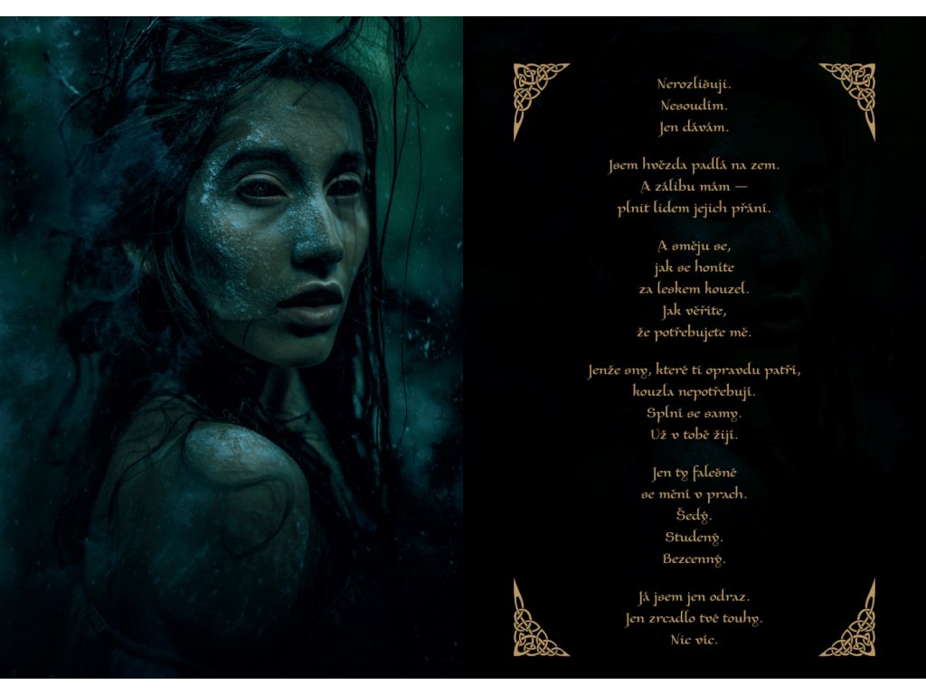 – tištěno na nevšedním kvalitním papíře se strukturou, podporující fantasy atmosféru